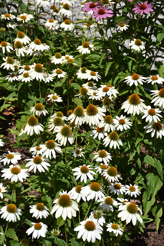 This fragrant echinacea produces large elegant white flowers with coppery centers; a perfect choice for planting in groups, along border edges, or in containers; great for flower arrangements, attracts pollinators