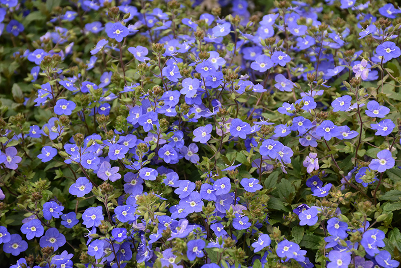 Georgia Blue Speedwell will grow to be only 4 inches tall at maturity extending to 6 inches tall with the flowers, with a spread of 24 inches. When grown in masses or used as a bedding plant, individual plants should be spaced approximately 18 inches apart. Its foliage tends to remain low and dense right to the ground. It grows at a fast rate, and under ideal conditions can be expected to live for approximately 10 years. As an herbaceous perennial, this plant will usually die back to the crown each winter, and will regrow from the base each spring. Be careful not to disturb the crown in late winter when it may not be readily seen!