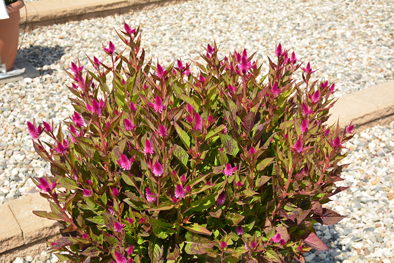 Intenz™ Classic Celosia features showy plumes of violet flowers rising above the foliage from early summer to mid fall. The flowers are excellent for cutting. Its pointy leaves remain green in color throughout the season.