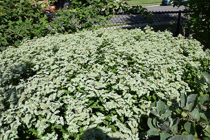 Short Toothed Mountain Mint will grow to be about 3 feet tall at maturity, with a spread of 24 inches. When grown in masses or used as a bedding plant, individual plants should be spaced approximately 20 inches apart. It grows at a fast rate, and under ideal conditions can be expected to live for approximately 5 years. As an herbaceous perennial, this plant will usually die back to the crown each winter, and will regrow from the base each spring. Be careful not to disturb the crown in late winter when it may not be readily seen!