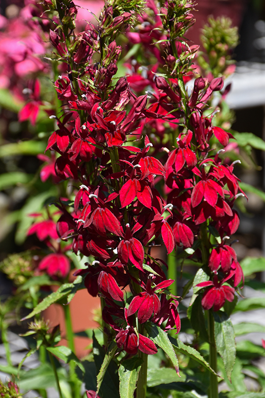 Fan Burgundy Cardinal Flower will grow to be about 26 inches tall at maturity, with a spread of 14 inches. When grown in masses or used as a bedding plant, individual plants should be spaced approximately 12 inches apart. It grows at a fast rate, and under ideal conditions can be expected to live for approximately 5 years. As an herbaceous perennial, this plant will usually die back to the crown each winter, and will regrow from the base each spring. Be careful not to disturb the crown in late winter when it may not be readily seen!