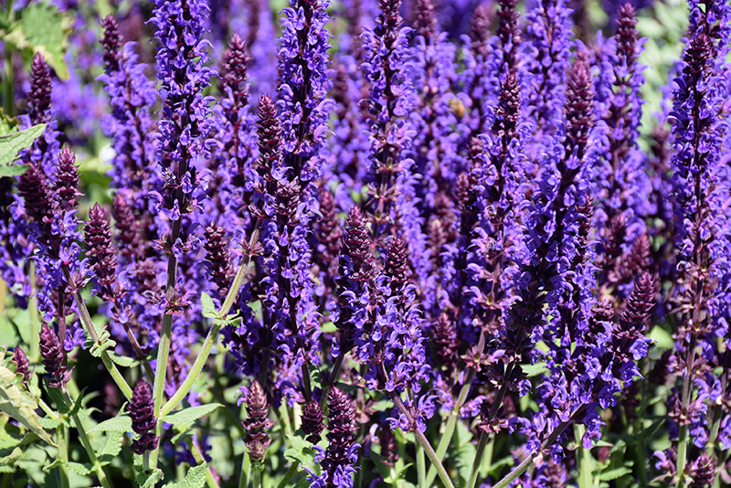 A bushy, heat tolerant variety with stunning spikes of long lasting violet-blue flowers that fade to reveal burgundy calyces, for extended garden color; somewhat drought tolerant; excellent for the sunny border or containers