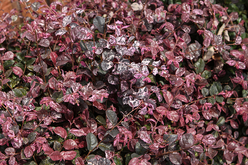 A spectacular, spring-blooming shrub with electric, deep pink strap-like flowers covering the plant in spring, dramatic deep maroon foliage is splashed with white and pink, providing a great show the rest of the season; easy to grow and maintain