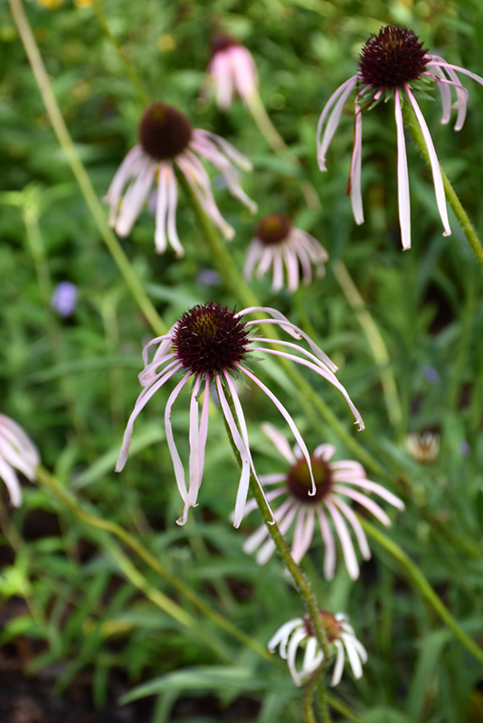 This variety features long, narrow, drooping purple-pink petals that fade to white, with coppery-orange center cones; stems and seed heads will remain erect and feed the birds in winter; use in naturalized areas