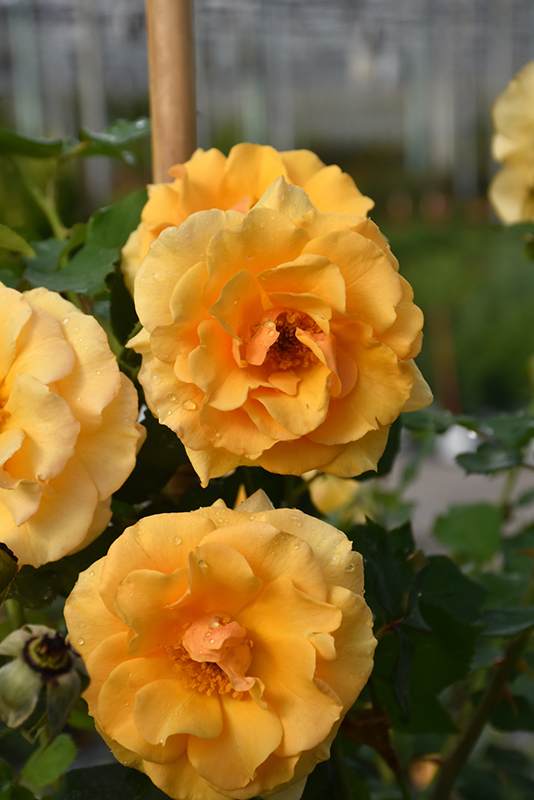 Rise Up Amberness® Rose features showy fragrant fully double gold flowers with peach overtones along the branches in early summer. The flowers are excellent for cutting. It has dark green deciduous foliage. The glossy oval compound leaves do not develop any appreciable fall color.