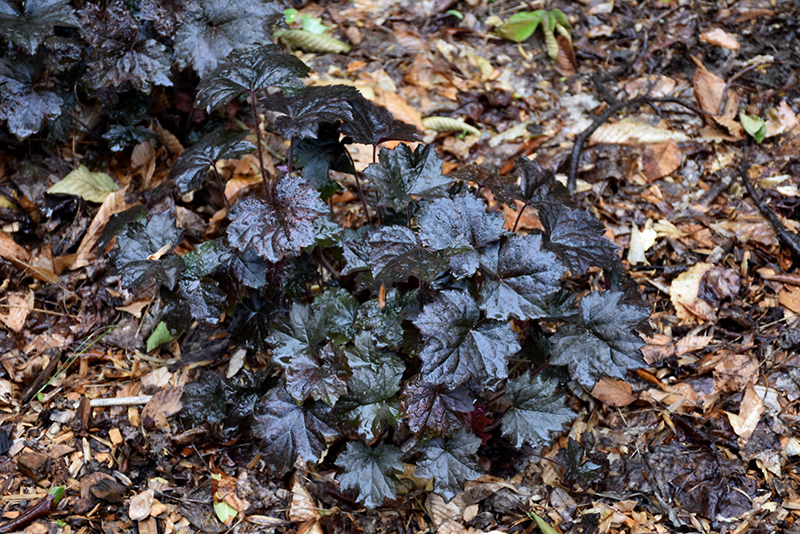 Blackout Coral Bells will grow to be only 6 inches tall at maturity extending to 12 inches tall with the flowers, with a spread of 15 inches. When grown in masses or used as a bedding plant, individual plants should be spaced approximately 12 inches apart. Its foliage tends to remain low and dense right to the ground. It grows at a medium rate, and under ideal conditions can be expected to live for approximately 10 years. As an evegreen perennial, this plant will typically keep its form and foliage year-round.