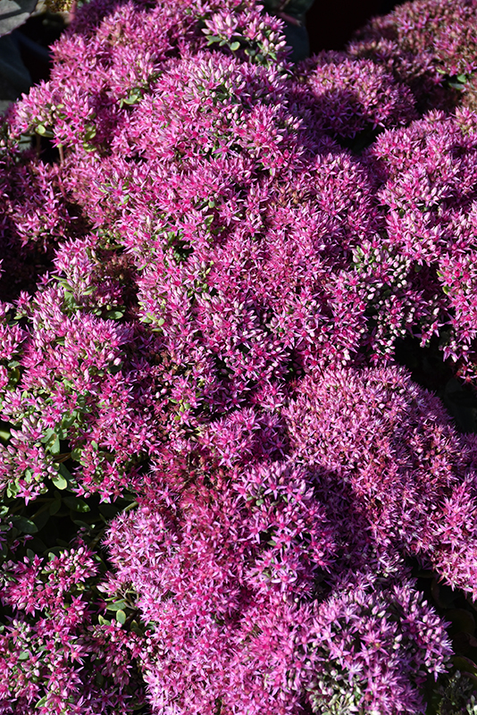Mr. Goodbud Stonecrop has masses of beautiful clusters of fuchsia flowers at the ends of the stems from late summer to late fall, which emerge from distinctive purple flower buds, and which are most effective when planted in groupings. The flowers are excellent for cutting. Its attractive large succulent round leaves remain bluish-green in color throughout the season. The dark red stems are very colorful and add to the overall interest of the plant.