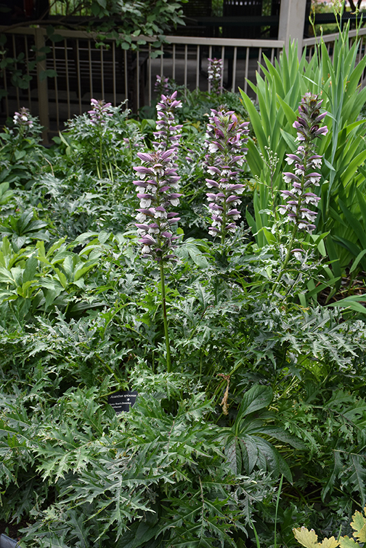 Bear's Breeches features showy spikes of pink hooded flowers with white overtones rising above the foliage in late summer. The flowers are excellent for cutting. Its attractive large spiny lobed leaves remain forest green in color throughout the year.