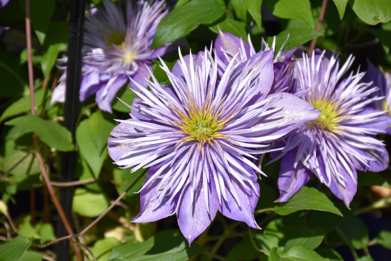 Spectacular large, early double lavender-blue flowers with some violet undertones and white, spiky centres, are produced on a vigorous vine, a great plant for the novice and expert gardener alike